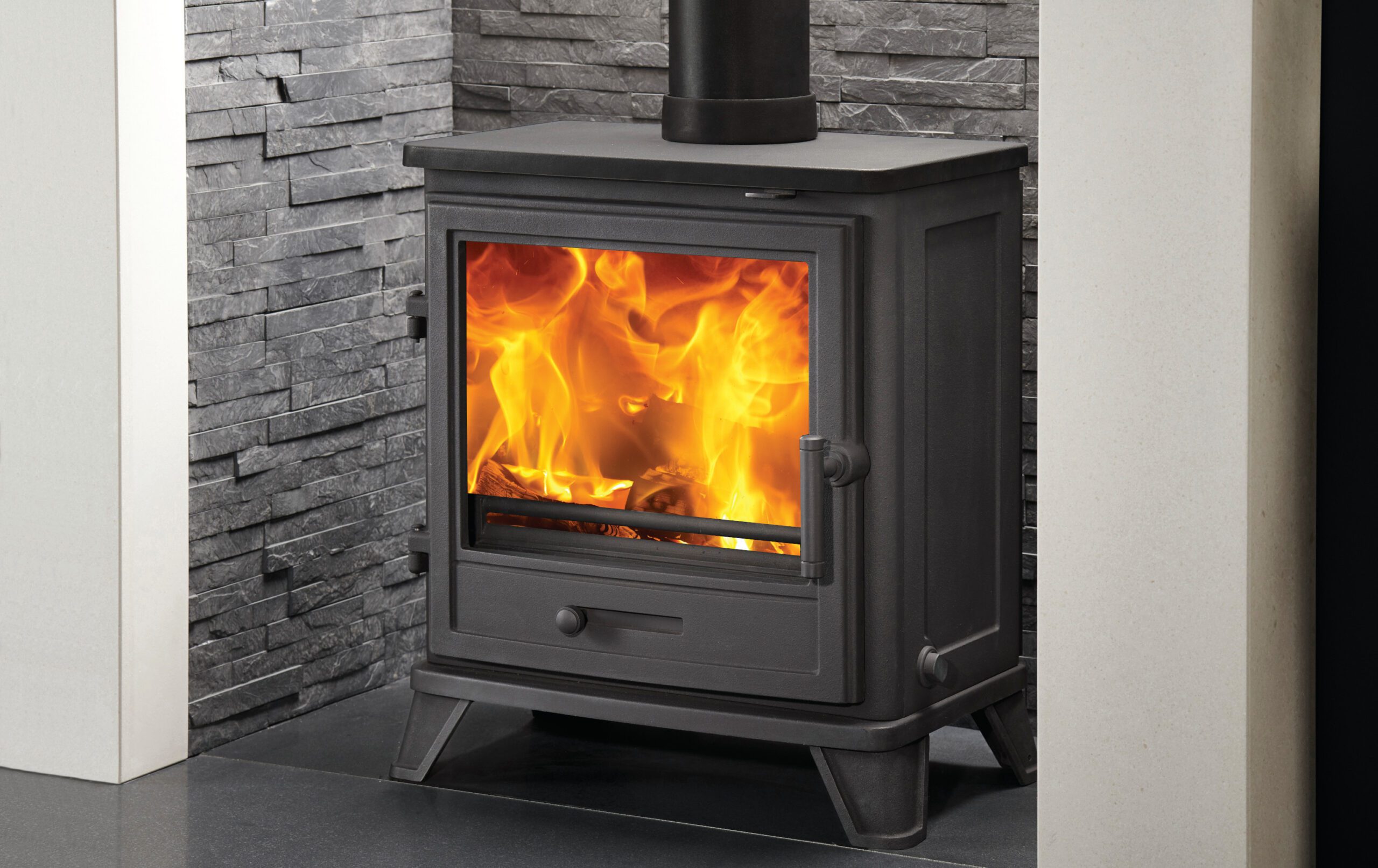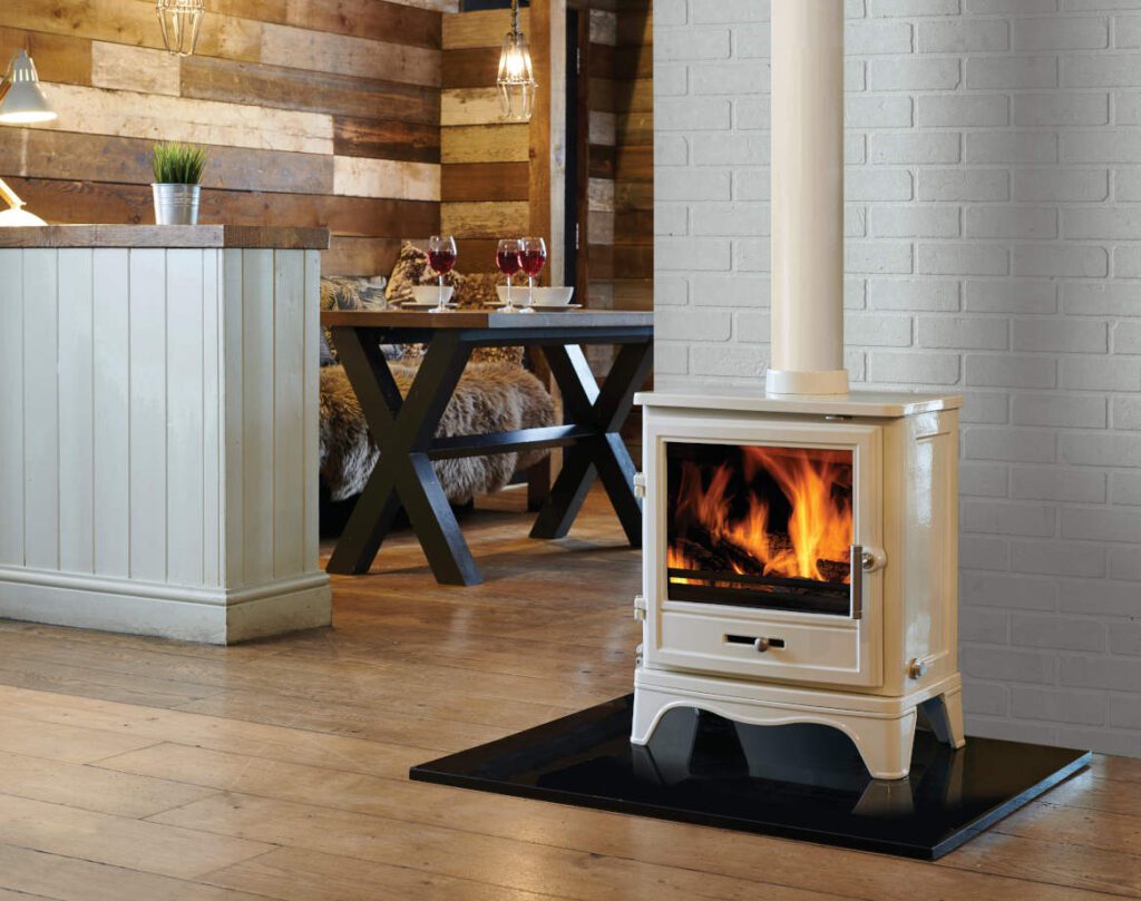 A highly efficient stove from our new ECO 2022 range, DEFRA approved for burning wood in a smoke control area. The Bassington Eco Skirted comprises a cast iron construction for durability and maximum heat, large glass window, airwash system for maintaining an optimal view of the flames and protected with the Capital Lifetime Warranty. Suitable with a 20mm light duty hearth, the Bassington Skirted is also available in Warm White Enamel as pictured below.