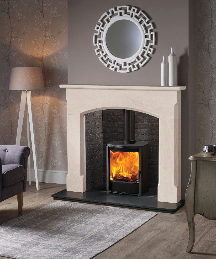Pictured in Aegean Limestone with the Riven Slate Chamber, Sigma Eco Stove and Polished Granite Hearth. The Bellingham can also be supplied in Corinthian Stone.