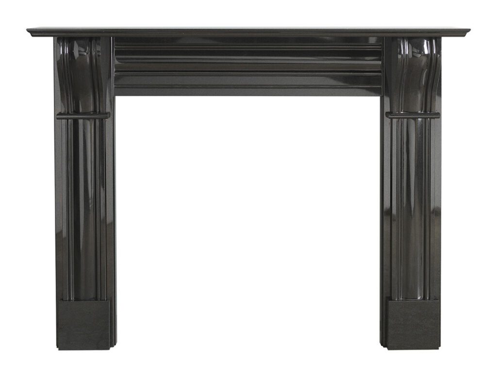 Our two mantel designs, the Durham (shown on this page) and Verona (see Carrara page) have a mantel shelf length of 1500mm (59″) and arrive polished with exquisite hand carved corbels to the tops of the legs.