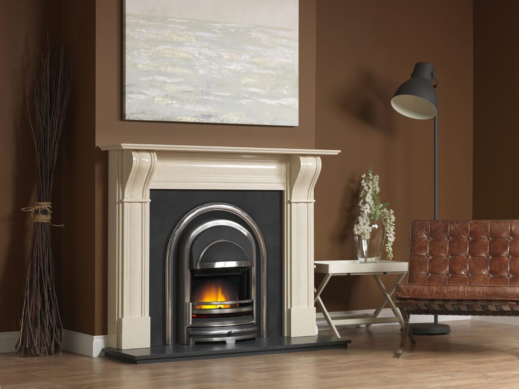 The Regal Electra is a plain arched insert with the inner and outer bands polished along with the canopy rim and fire-front.