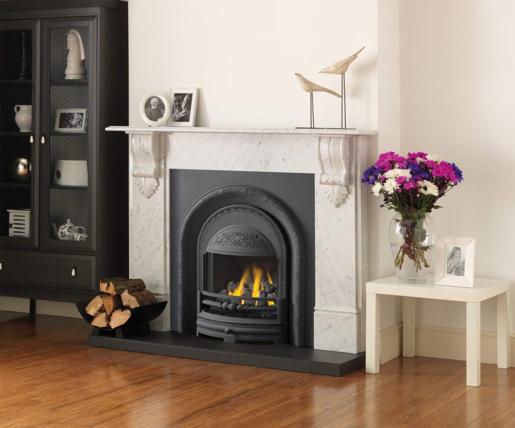 Verona mantel in Carrara pure Italian marble. This mantel displays attractive carved corbels which help to support the top shelf and has a standard shelf length of 1500mm (59 ″). For those with a small chimney breast, a Victori- an Corbel mantel is available in Carrara or Turkish Limestone but with a smaller shelf length of 1350mm (53 ″).