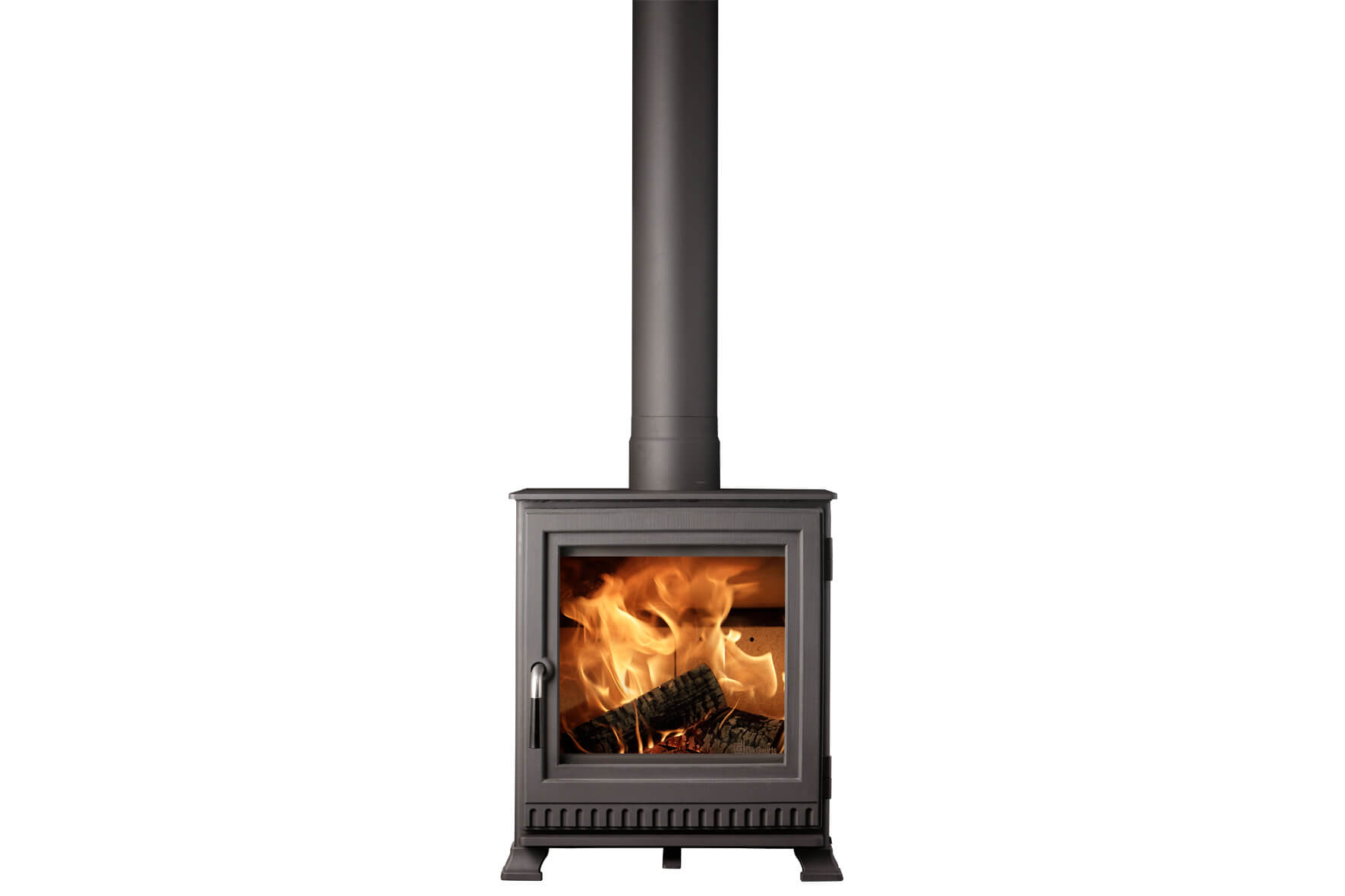 What is striking about the Aste is its classic look, realised by the beautifully designed legs and robust cast iron door. The centre of the flue pipe is located only 10 cm from the rear side. The result is that this wood burner can be easily placed inside an existing fireplace. A heat shield is also available for this stove, allowing you to place it closer to a flammable wall.