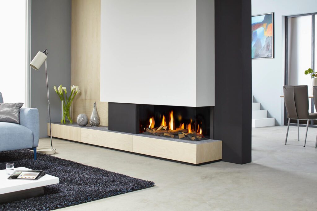Metro 100XT/2 Eco Wave is a corner version of the Metro 100XT Eco Wave. It brings extra versatility as it can be used as part of a room dividing wall, transforming a conventional living space into a warm and spectacular environment. It is available with natural twigs or Carrara stone fire beds and in either natural gas or LPG versions.