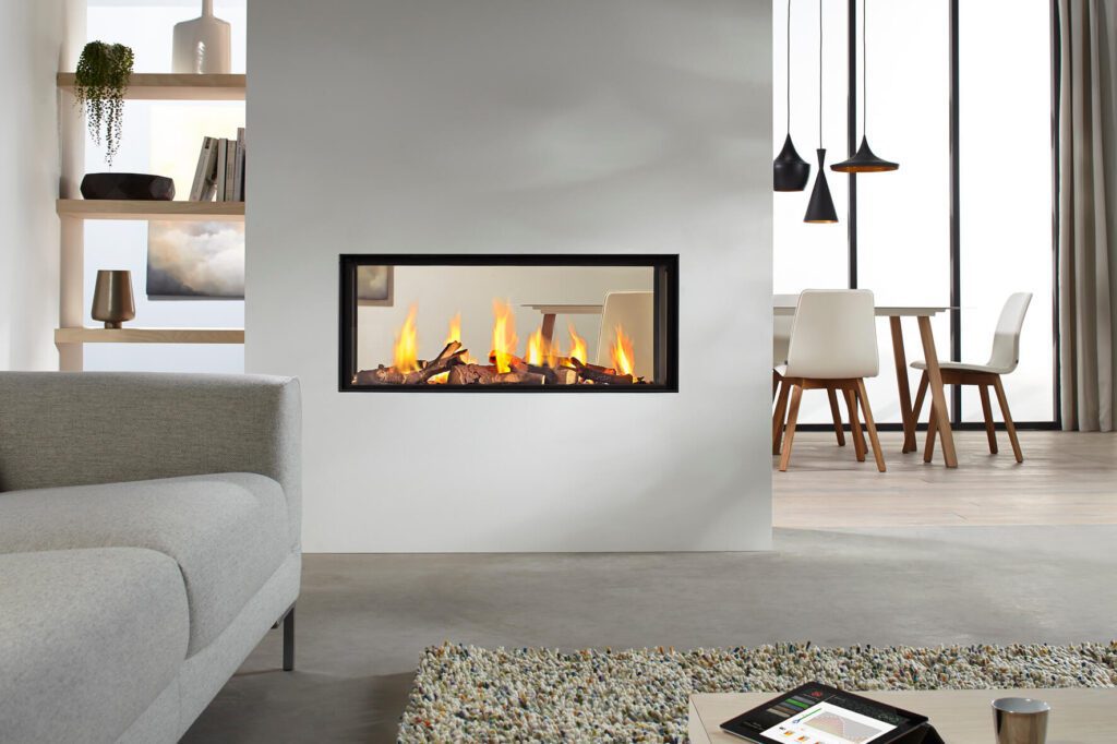 Metro 100XT Tunnel Eco Wave is a see-through balanced flue gas fire for a room divider or adjoining rooms, making an impressive 3D spectacle. The burner spreads the fire in across the entire width and depth of the fire bed, while the extra tall glass window provides a much higher flame picture than that of ordinary gas fires.