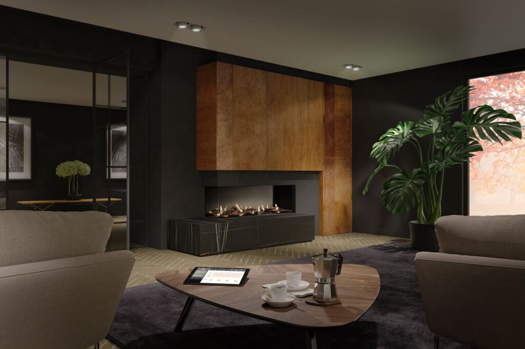 Metro 130XT/2 Eco Wave is an expansive 2 sided balanced flue gas fire. It can be used as a feature in a room dividing wall, transforming an ordinary living room into a warm and dramatic environment. It is available with natural logs or Carrara stone fire beds, mains gas or Propane versions and raised hearths with fabricated chimneybreasts