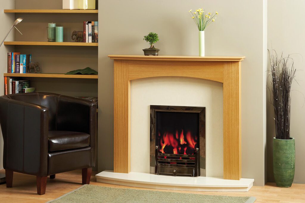 “Simple and inexpensive the Poppy is available in white, light oak, mahogany and teak finishes. A smaller electric suite version of this surround is featured in Modern Electric Suites.”