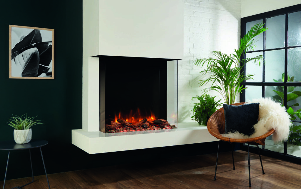 The eReflex 75W electric fire can be installed as either a three-sided fire or two-sided corner fire depending on your tastes.