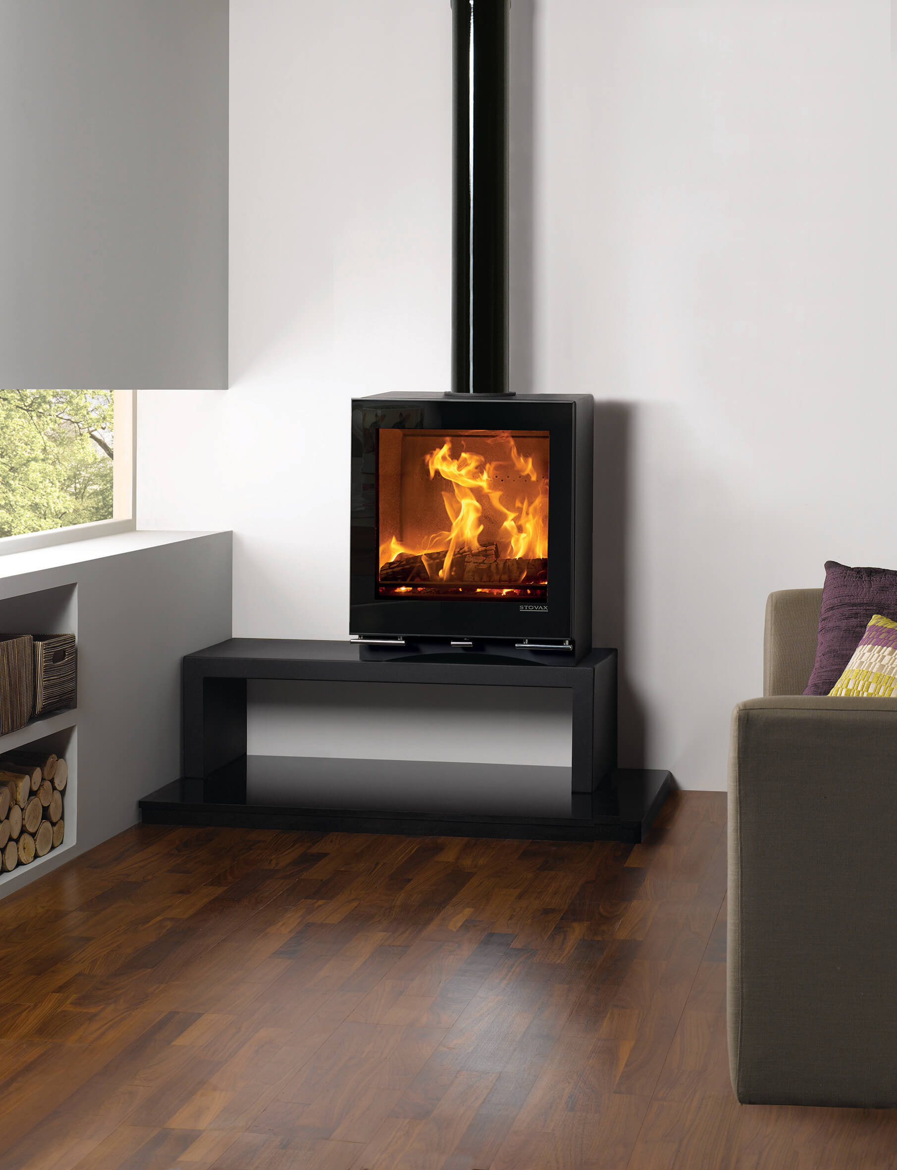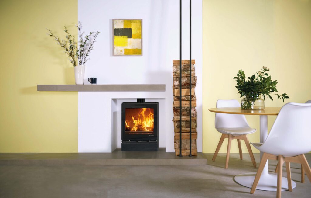 This wide-format Stovax Vision Medium Slimline wood burning and multi-fuel stove offers the stunning flame visuals of the more powerful Medium stove model whilst maintaining a 5kW heat output, thanks to its slim depth. This stylishly contemporary stove is available in either wood burning or multi-fuel versions to suit your lifestyle.