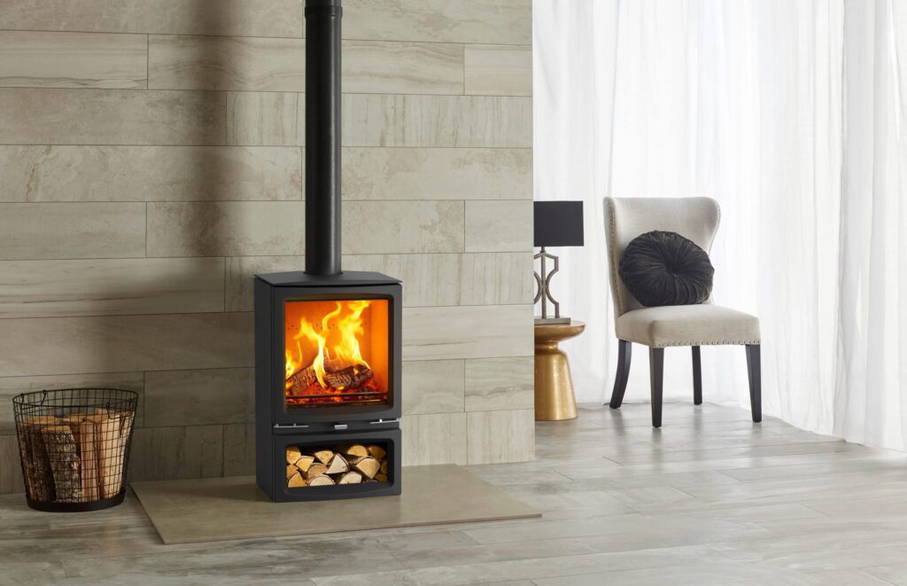 The Stovax Vogue Medium wood burning and multi-fuel stove provides an impressive 7kW of heat, making it a great choice for larger living spaces. With an expansive stove window that features self-cleaning Airwash technology, the Medium’s superb flame visuals provide a captivating focal point on a cold winter’s eve. Featuring the very latest combustion technology, this eco-friendly stove burns so cleanly it is compliant with future Ecodesign emission standards.