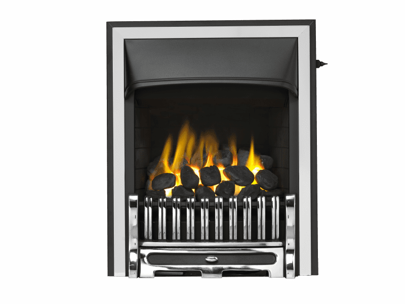 This open fronted inset fire promises the flame realism of a solid fuel fire – thanks to its deep, realistic coal effect fuel bed and warm glow.  It’s the ideal choice when heat distribution is a key priority as it offers a mix of radiant and convected heat,  meaning you feel heat directly from the fire [like heat from the sun] as well as it heating the room.