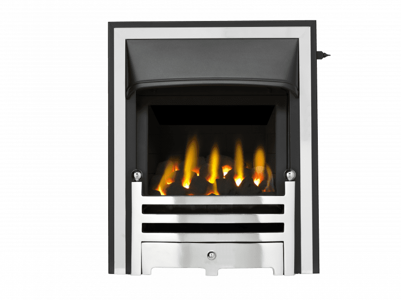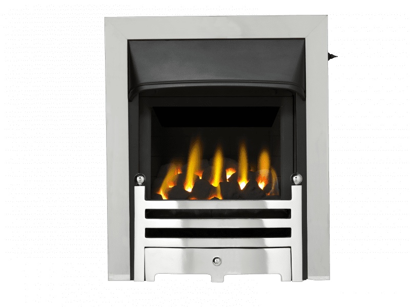This glass fronted inset fire provides a convincing flame – thanks to its deep, realistic coal effect fuel bed – while retaining high energy efficiency. It’s the ideal choice when energy efficiency is a key priority, as less gas is wasted in escaping the fire. It also offers radiant heat,  meaning you feel heat directly from the fire.
